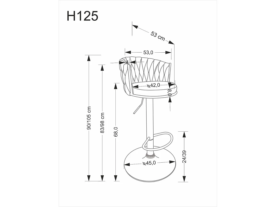 Sgabello da bar H125/rivestimento in tessuto/Grigio