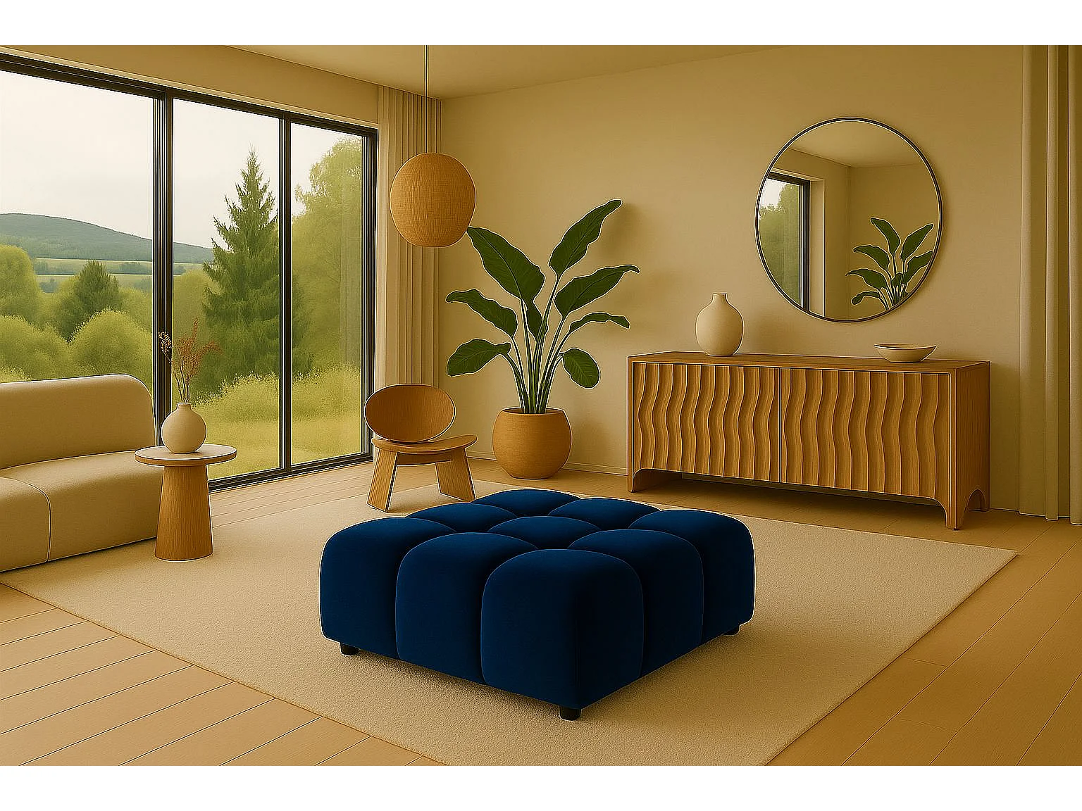 Sgabello, sgabello modulare Bolla, tessuto Bluvel, blu inchiostro