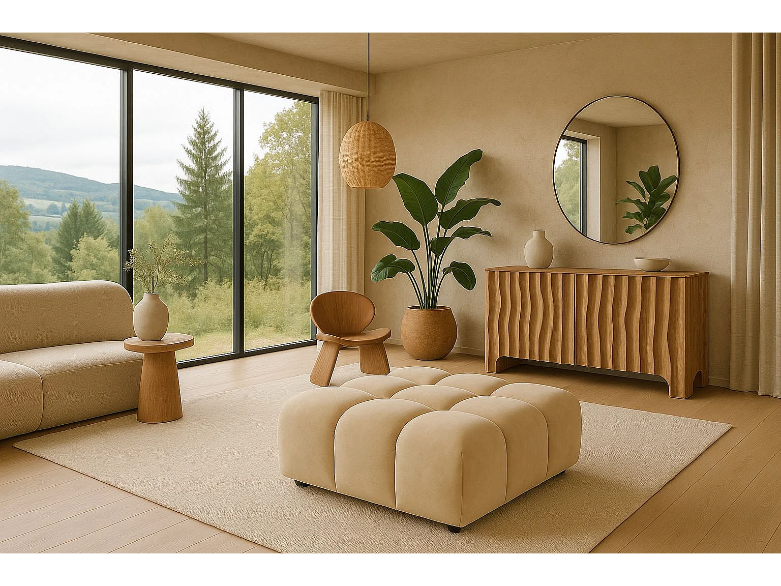 Sgabello, sgabello modulare Bolla, tessuto Bluvel, crema