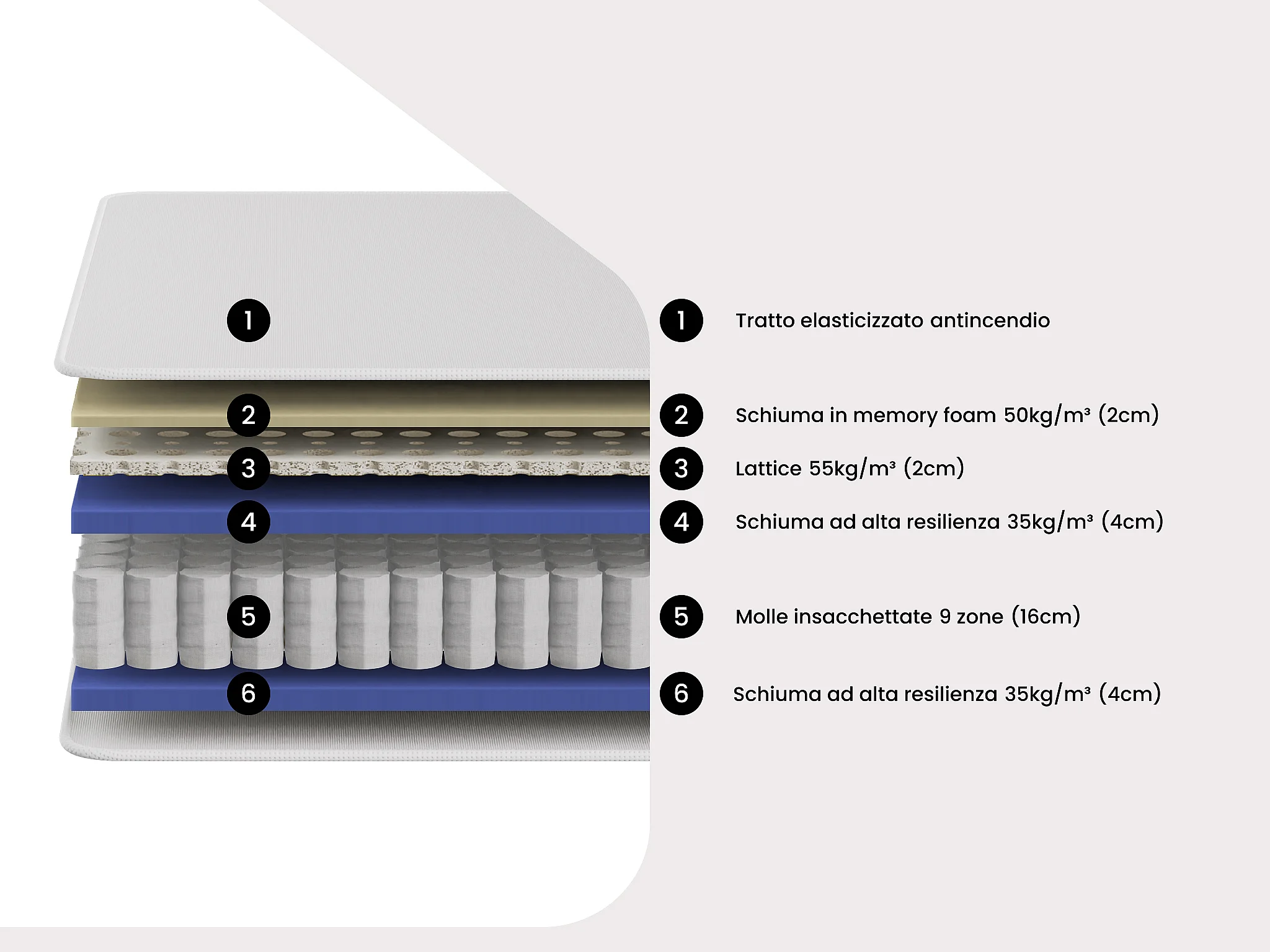 Set 140x190 rete vano natur.chiaro+mater. ibrido ignif. molle insac. 9z memory lattice sp.28 - SLOMAS di YSMÉE