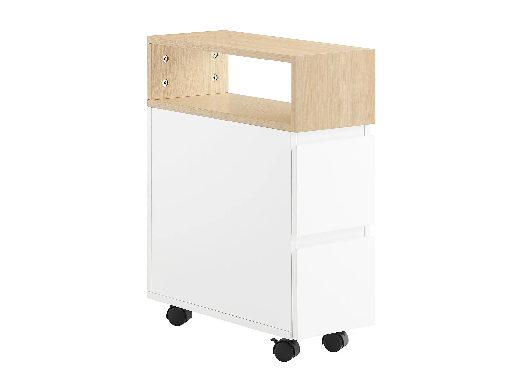 SoBuy Tavolino con ruote da divano Carrello con 2 cassetti Comodino camera da letto Naturale 50x20x60cm FBT155-WN