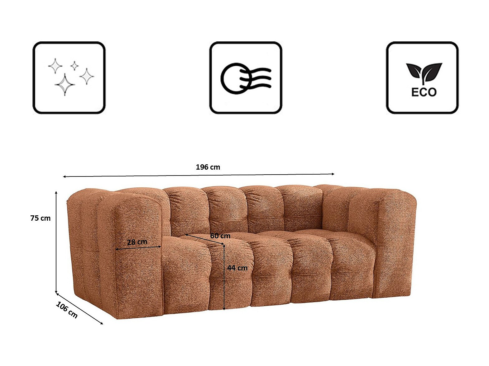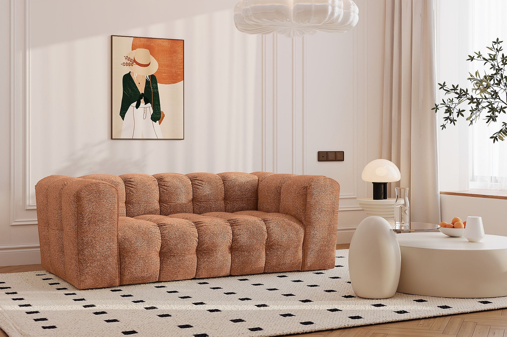Sofa 2-Sitzer, Komfort Couch BALOO, stoff Schenille & Bouclé, Orange