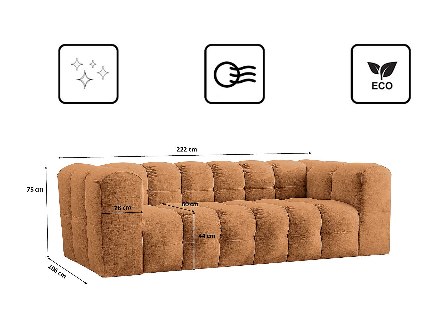 Sofa 3-Sitzer, Komfort Couch BALOO, stoff Schenille, Orange