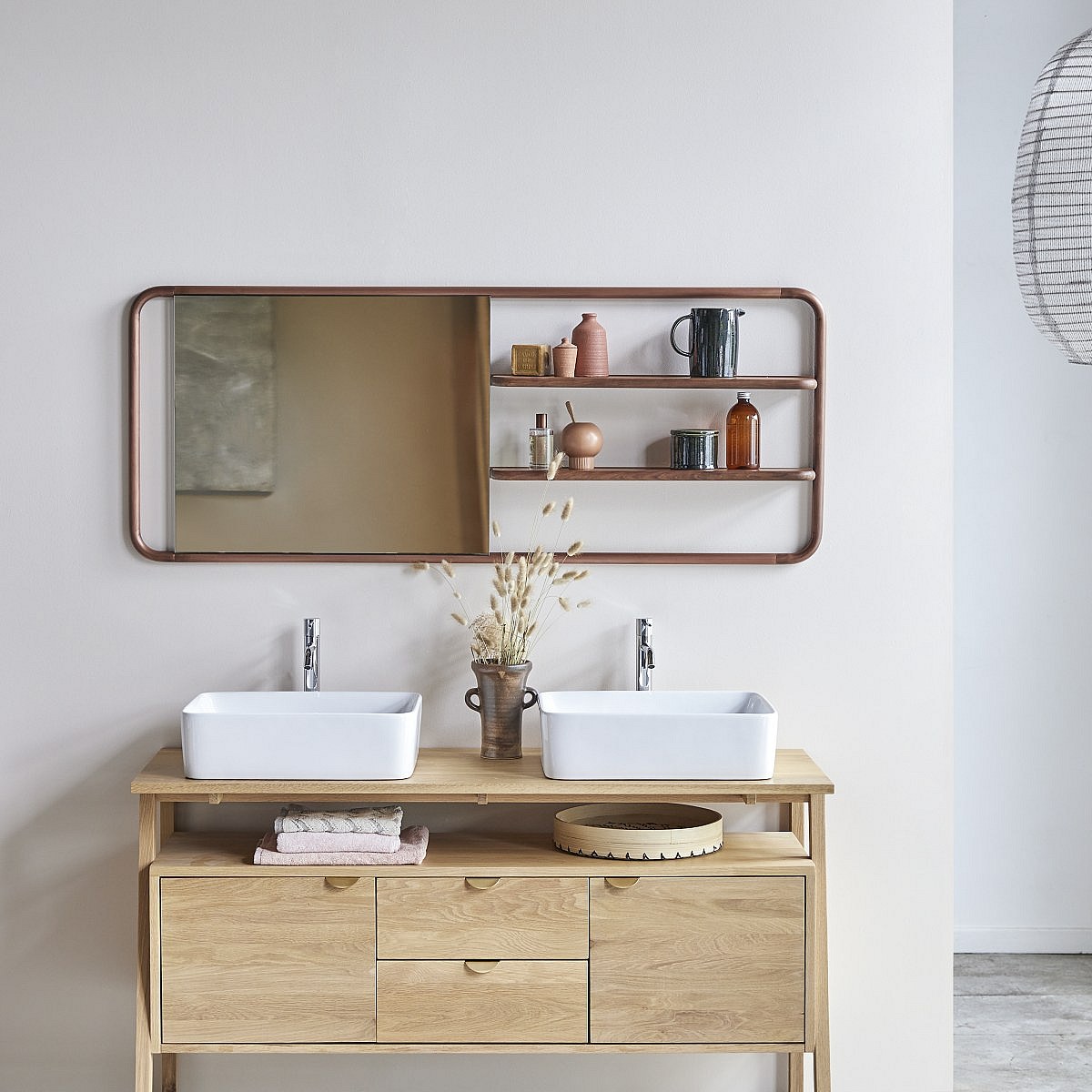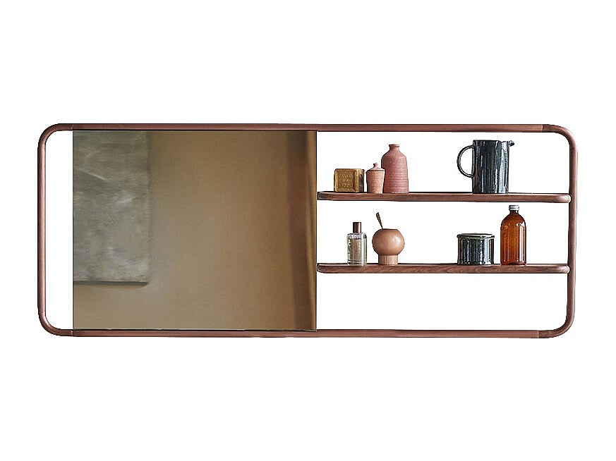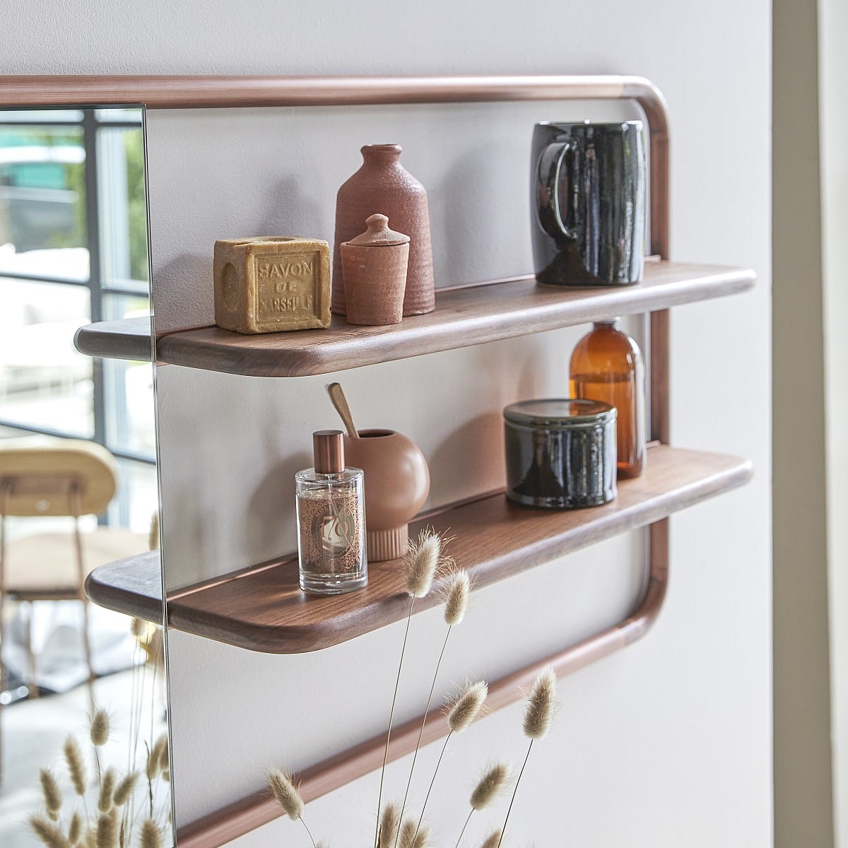 Specchiera con scaffale in legno di noce e ottone Félicie