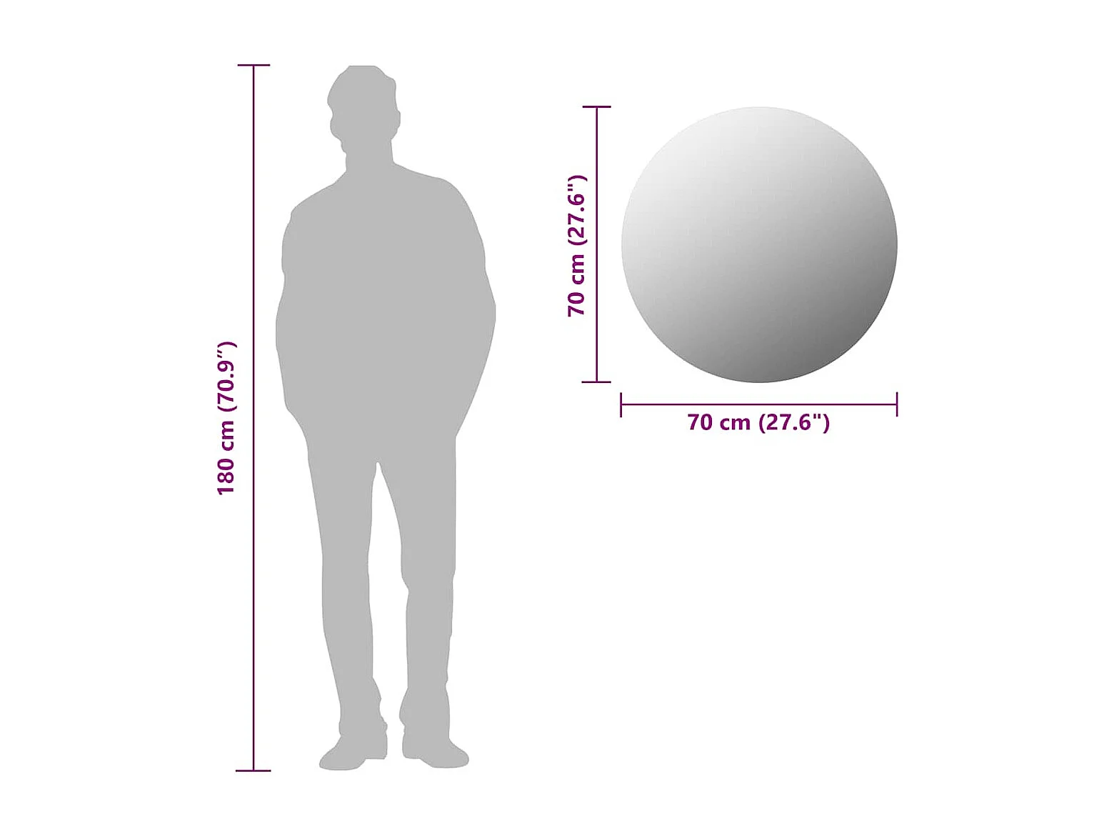 Specchio da parete in vetro rotondo da 70 cm