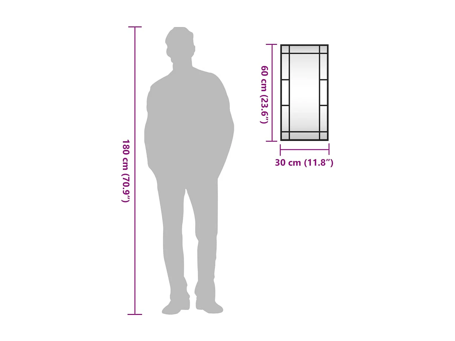 Specchio da parete nero 30x80 cm rettangolare in ferro