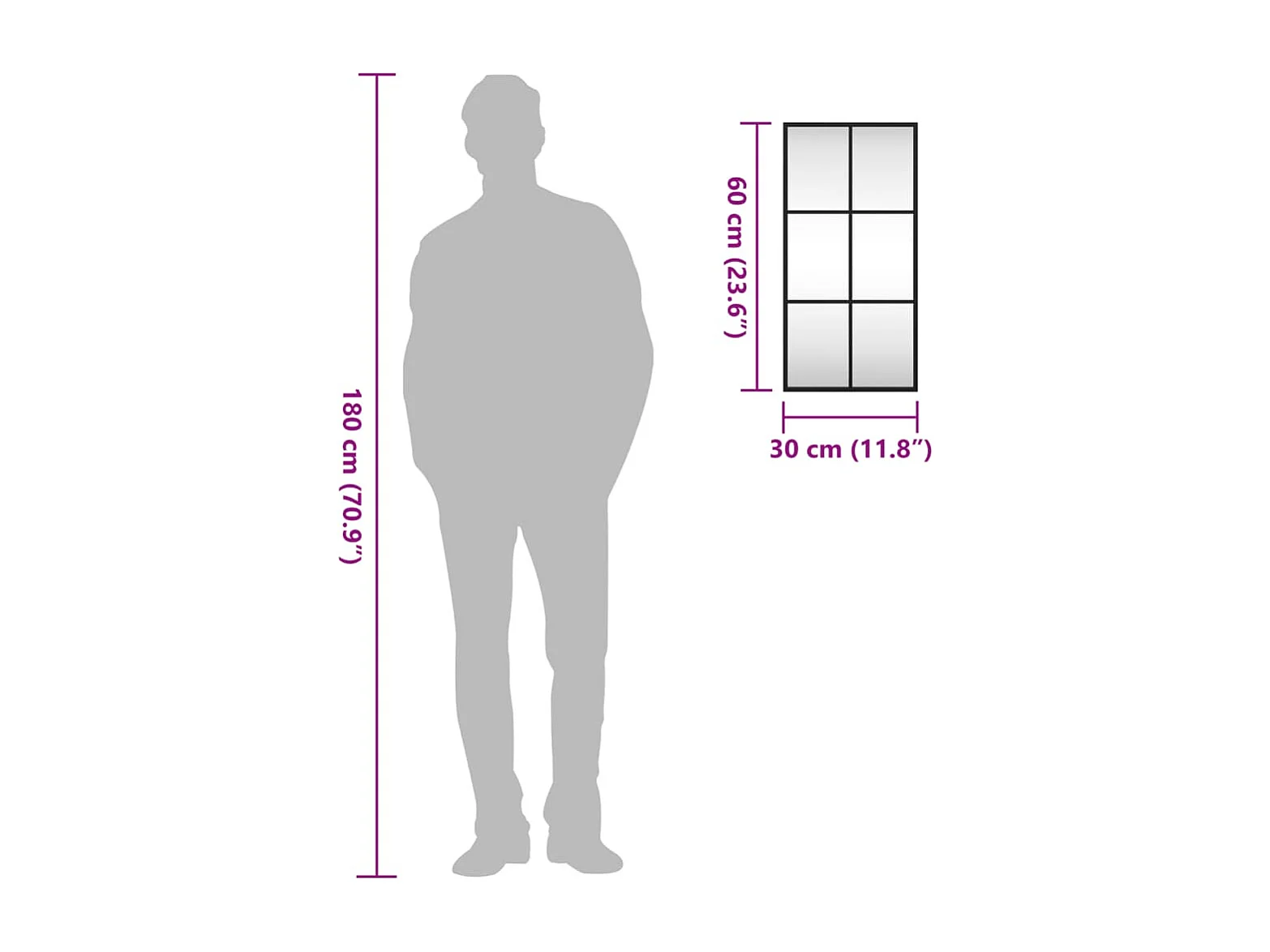 Specchio da parete nero 30x80 cm rettangolare in ferro