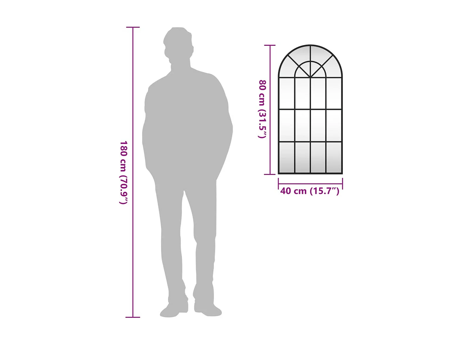 Specchio da parete nero 40x80 cm rettangolare in ferro