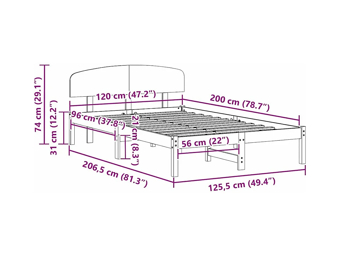 Struttura del letto Marrone 120 x 200 cm Legno massello di pino