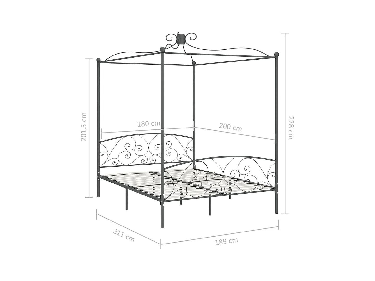 Struttura letto a baldacchino senza materasso in metallo grigio 180x200 cm