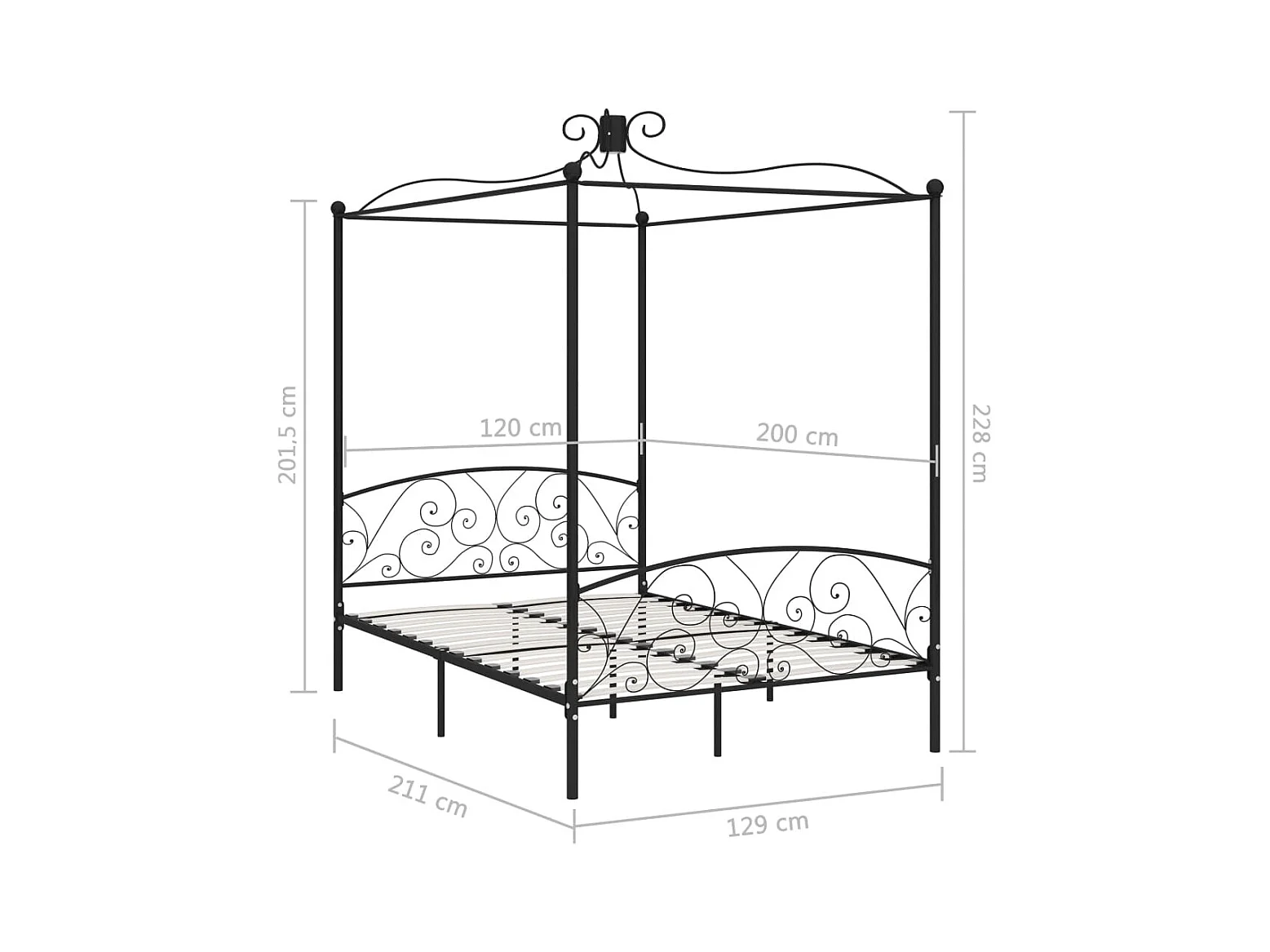 Struttura letto a baldacchino senza materasso in metallo nero 120x200 cm