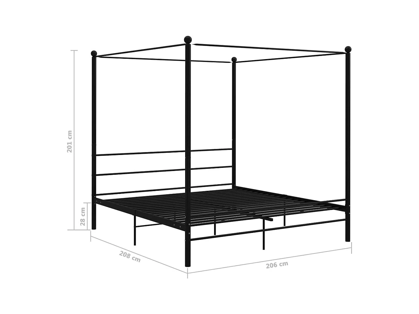 Struttura letto a baldacchino senza materasso in metallo nero 200x200 cm