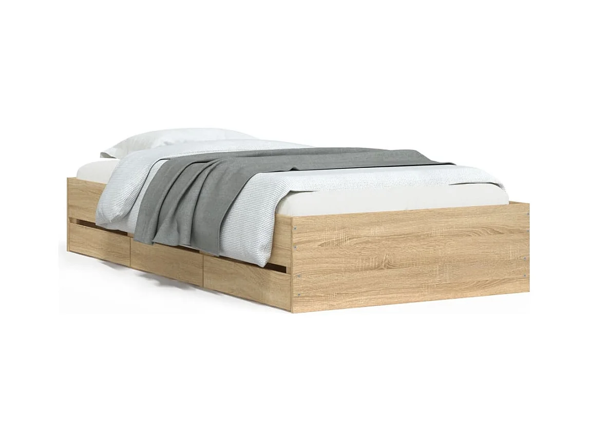 Struttura letto con cassetti senza materasso rovere sonoma 100x200 cm