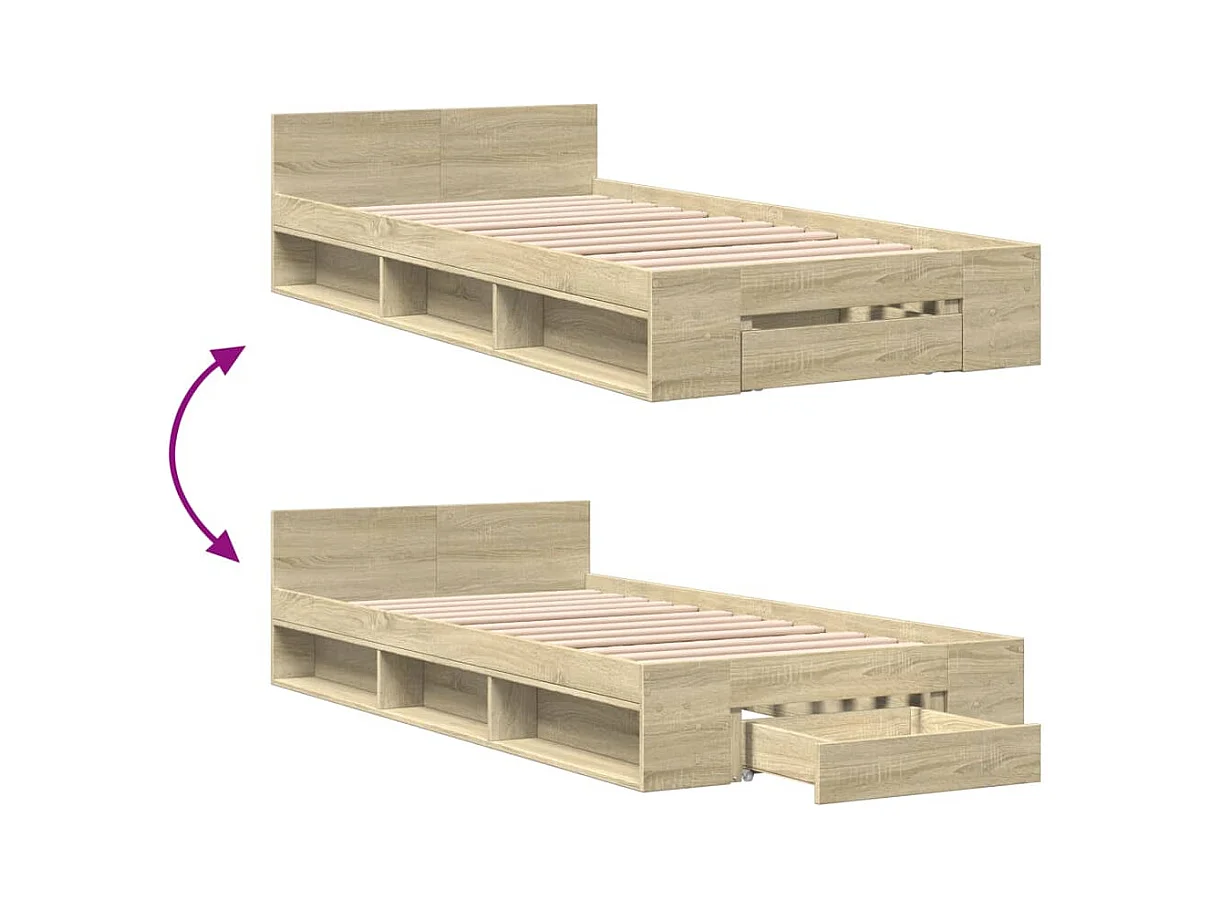 Struttura letto con cassetto senza materasso rovere sonoma 90x190 cm