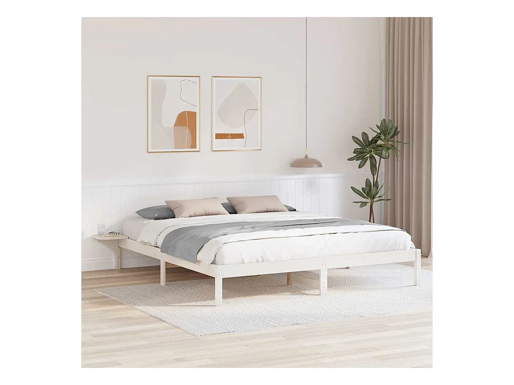 Struttura letto senza materasso bianco 200x200 cm in legno massello di pino