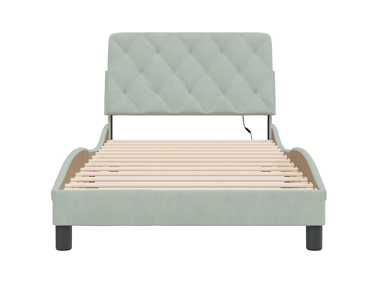 Struttura letto con LED senza materasso grigio chiaro 100x200cm velluto