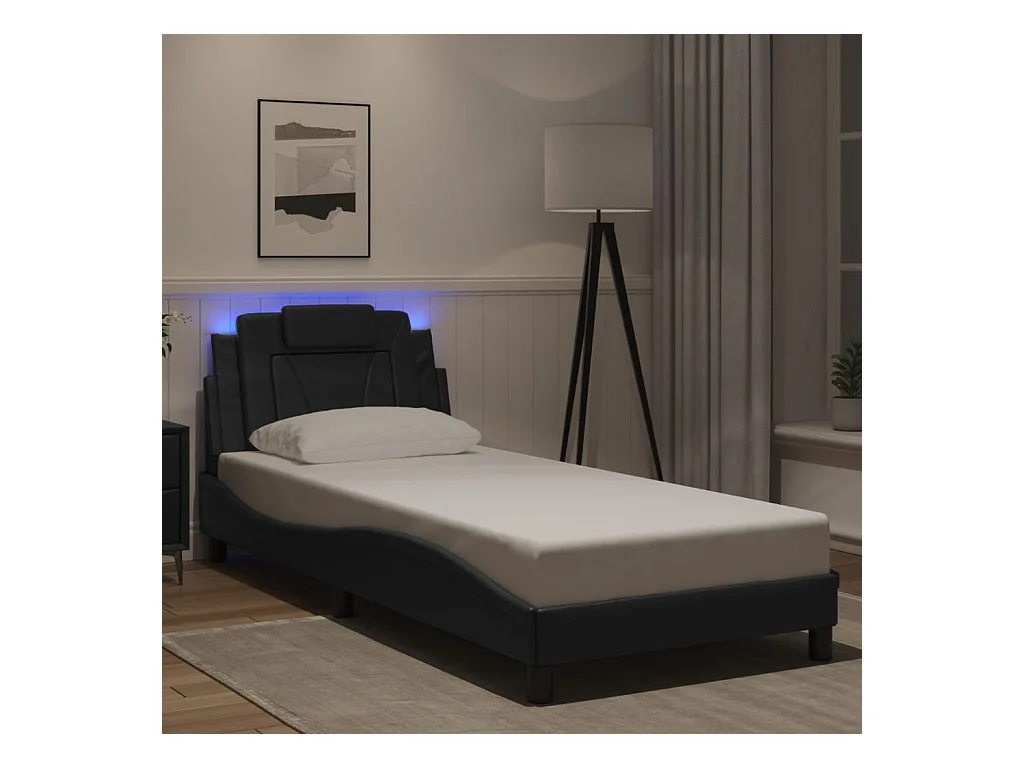 Struttura letto con LED senza materasso tessuto nero 90x190 cm