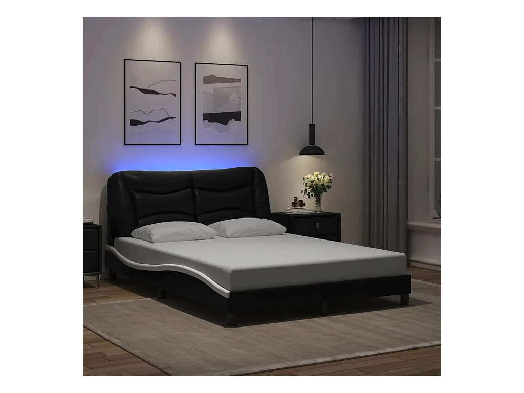Struttura letto con LED senza materasso nero e bianco 140x200 cm
