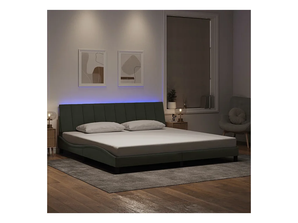 Struttura letto con luci LED grigio chiaro 200x200 cm velluto
