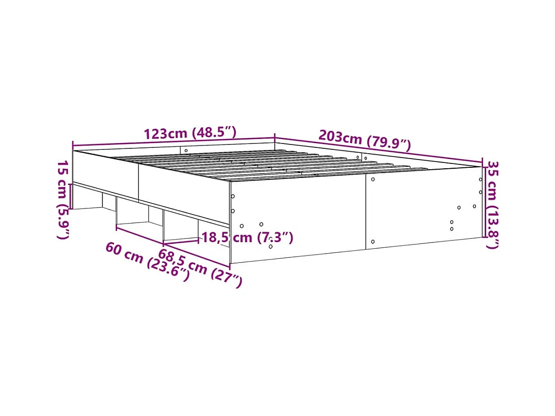 Struttura letto senza materasso grigio sonoma 120x200cm legno ingegnerizzato