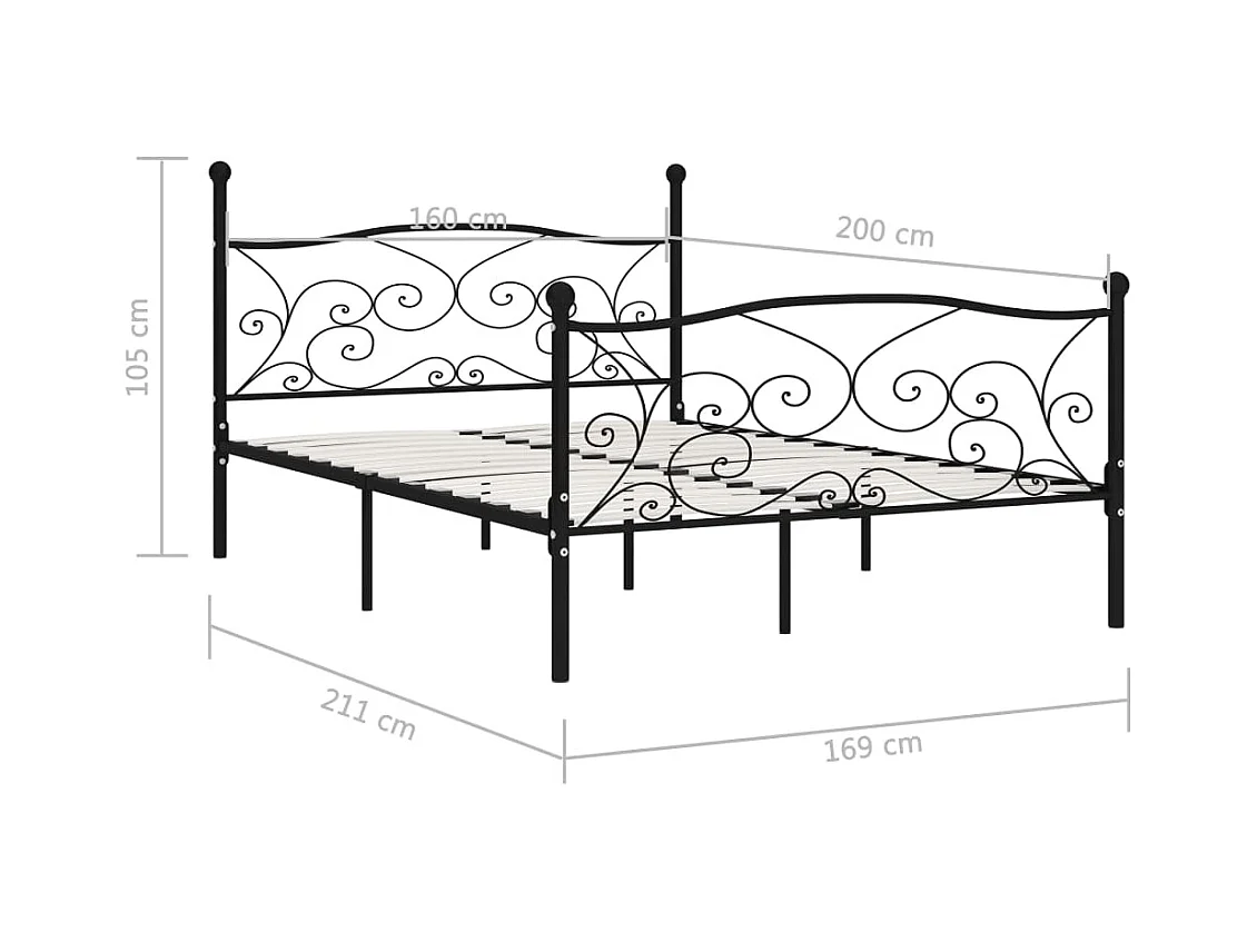 Struttura letto in metallo nero e rete a doghe 160 x 200 cm