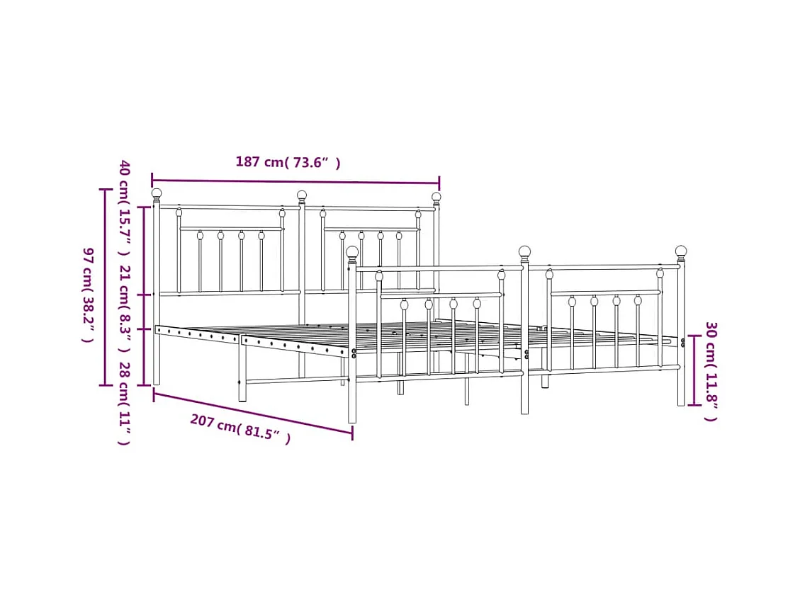 Struttura letto in metallo senza materasso con pediera nera 180x200cm