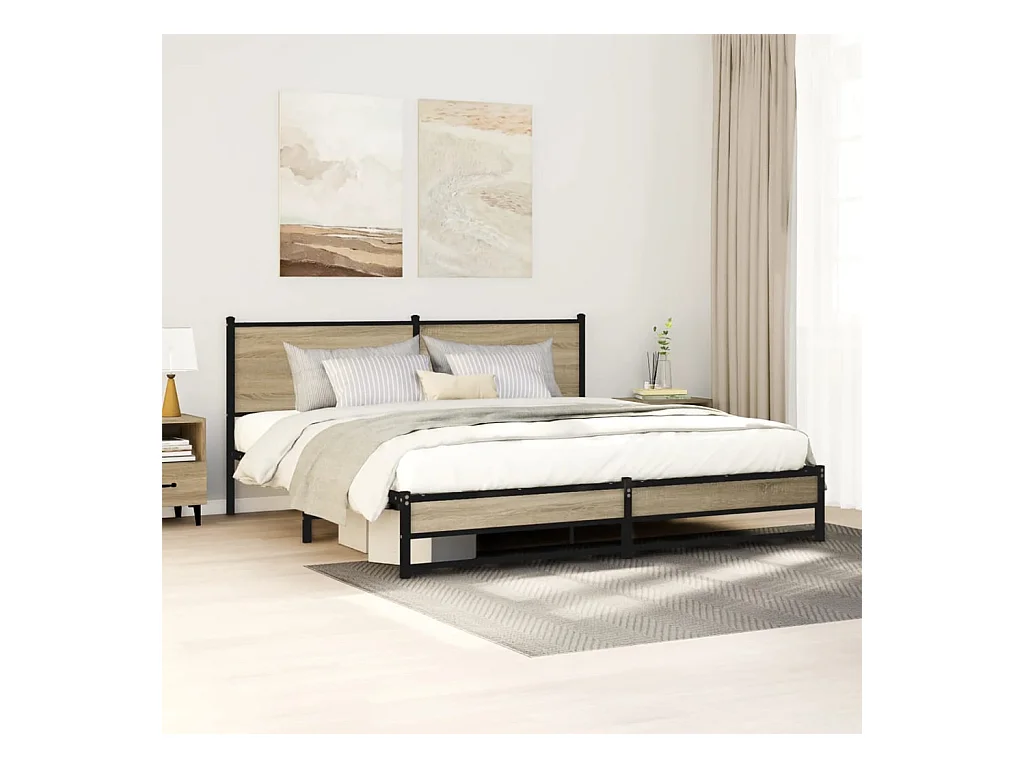 Struttura letto in metallo senza materasso rovere Sonoma 180x200 cm