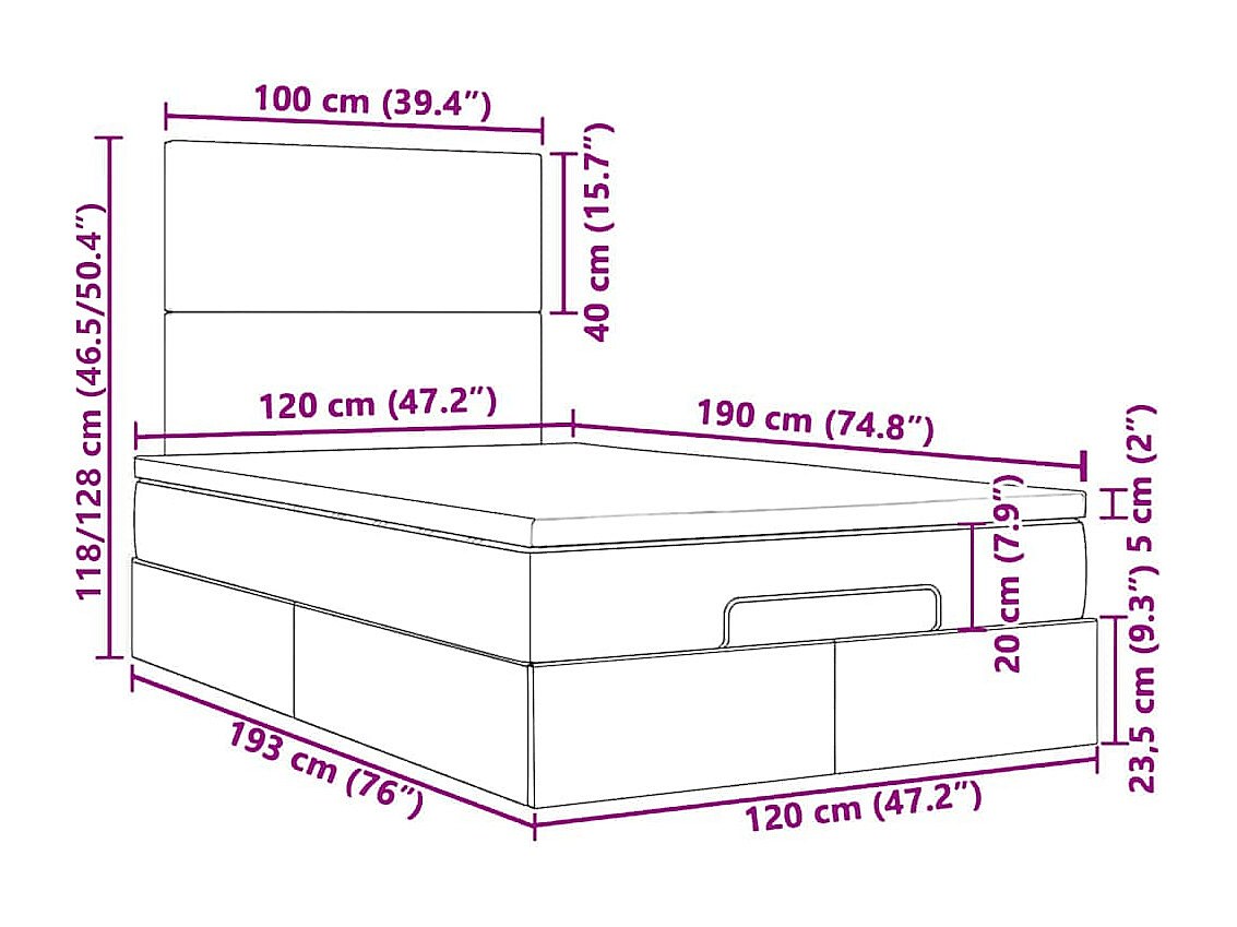 Struttura Letto Pouf con Materassi 120x190 cm Velluto