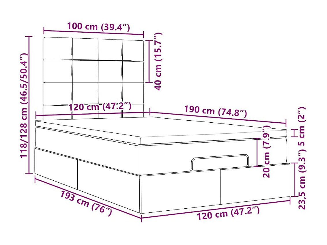 Struttura Letto Pouf con Materassi 120x190 cm Velluto