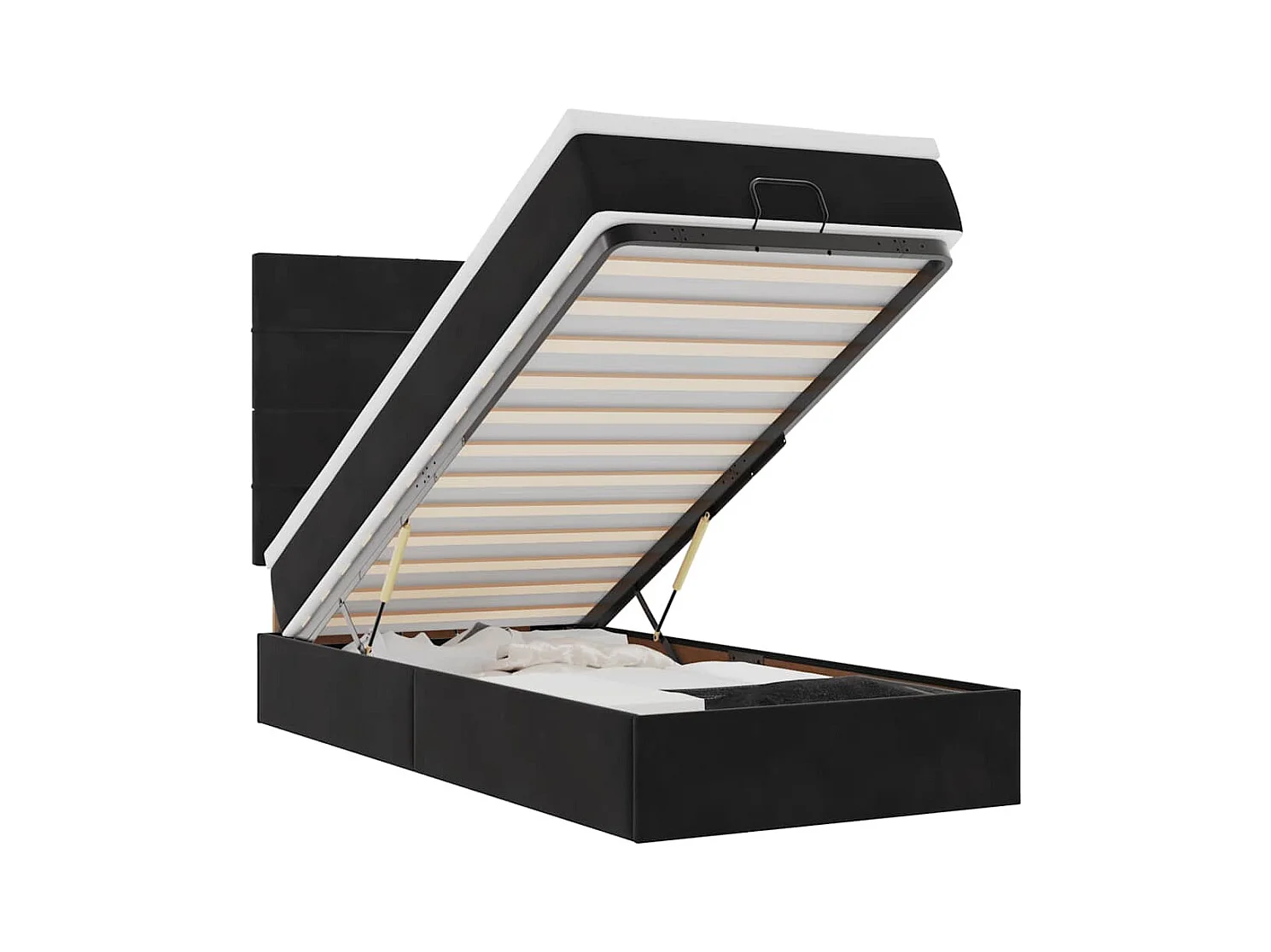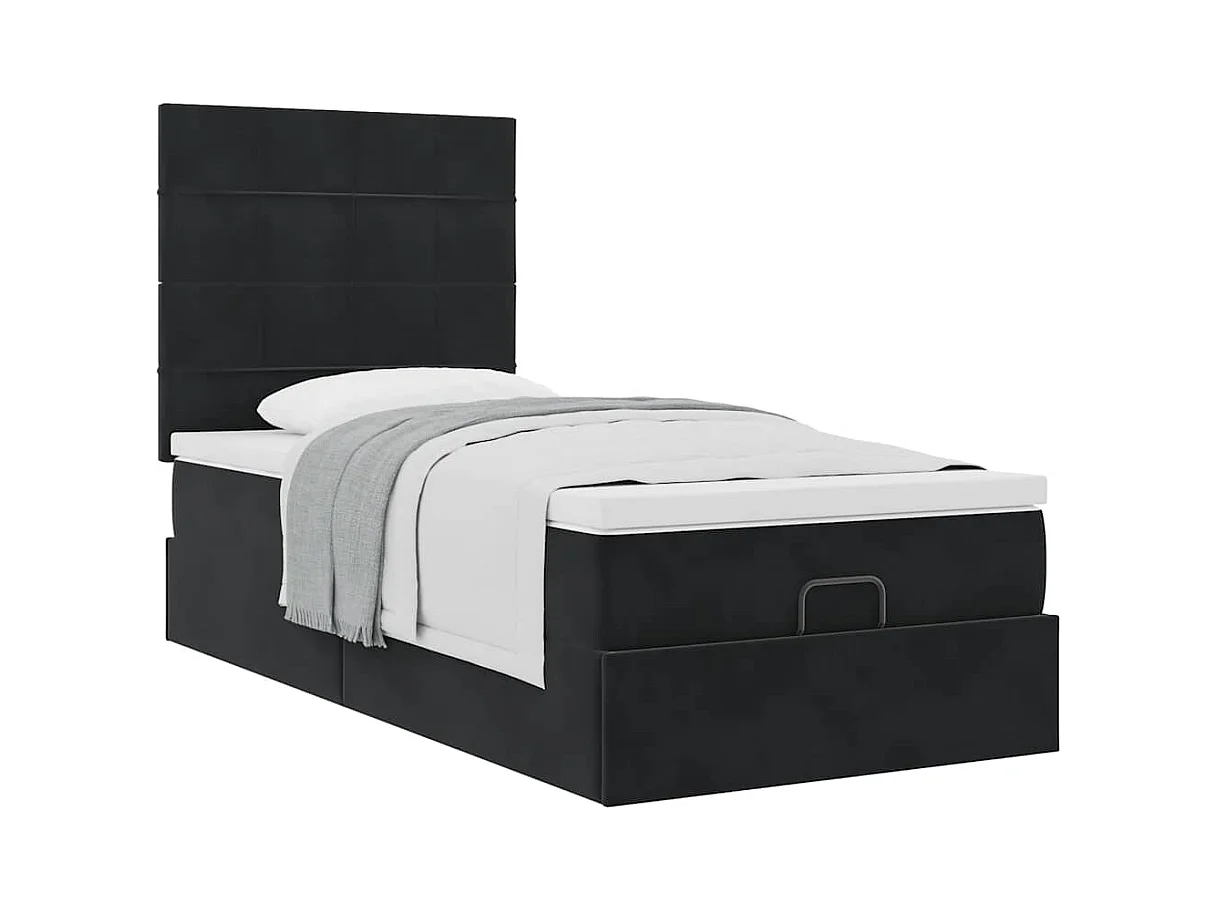 Struttura Letto Pouf con Materasso Nero 100x200 cm Velluto