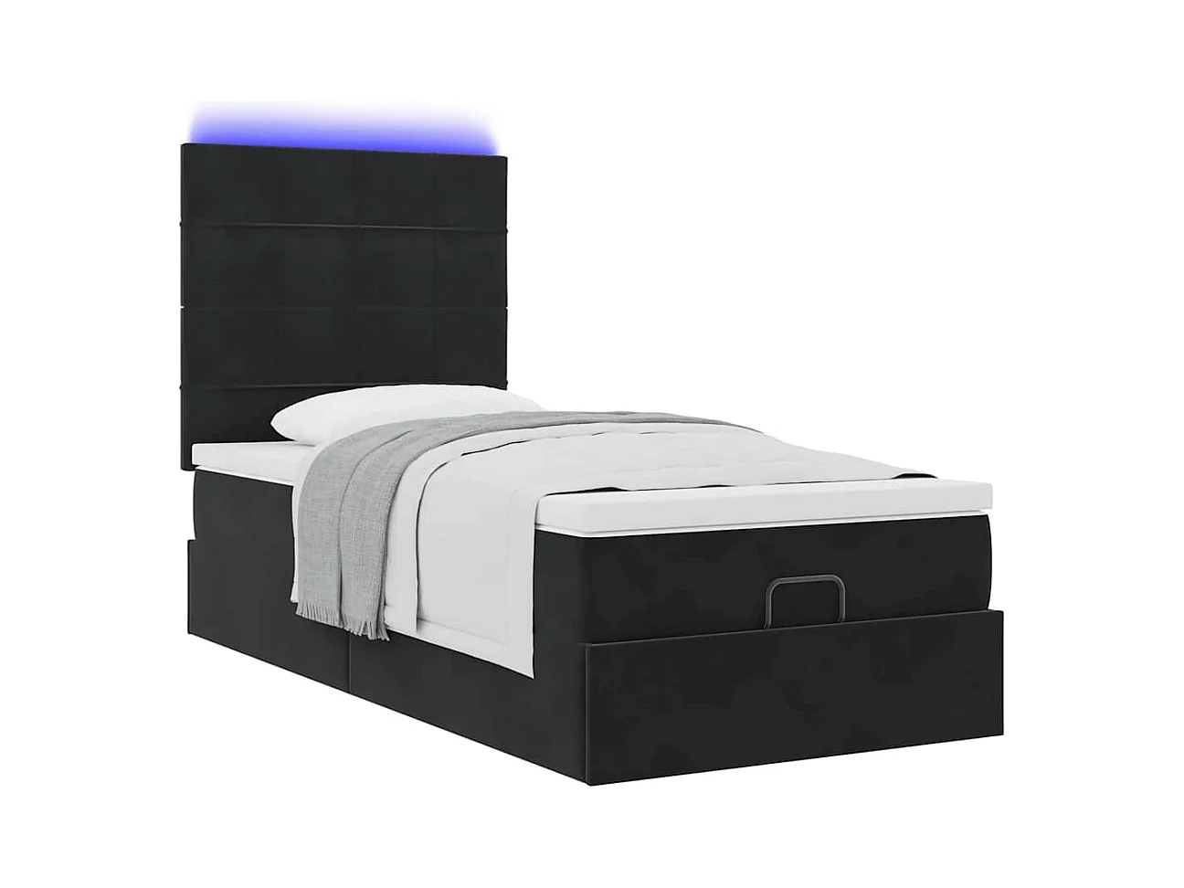 Struttura Letto Pouf con Materassi Nero 90x190 cm in Velluto