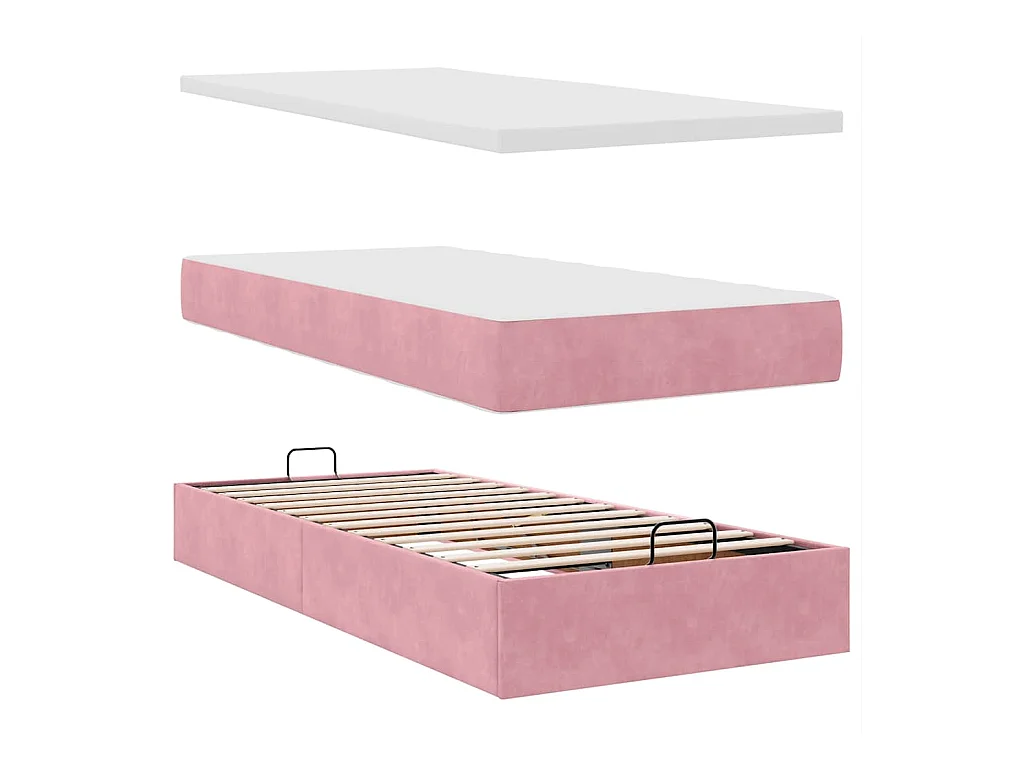Struttura Letto Pouf con Materasso Rosa 100x200 cm Velluto