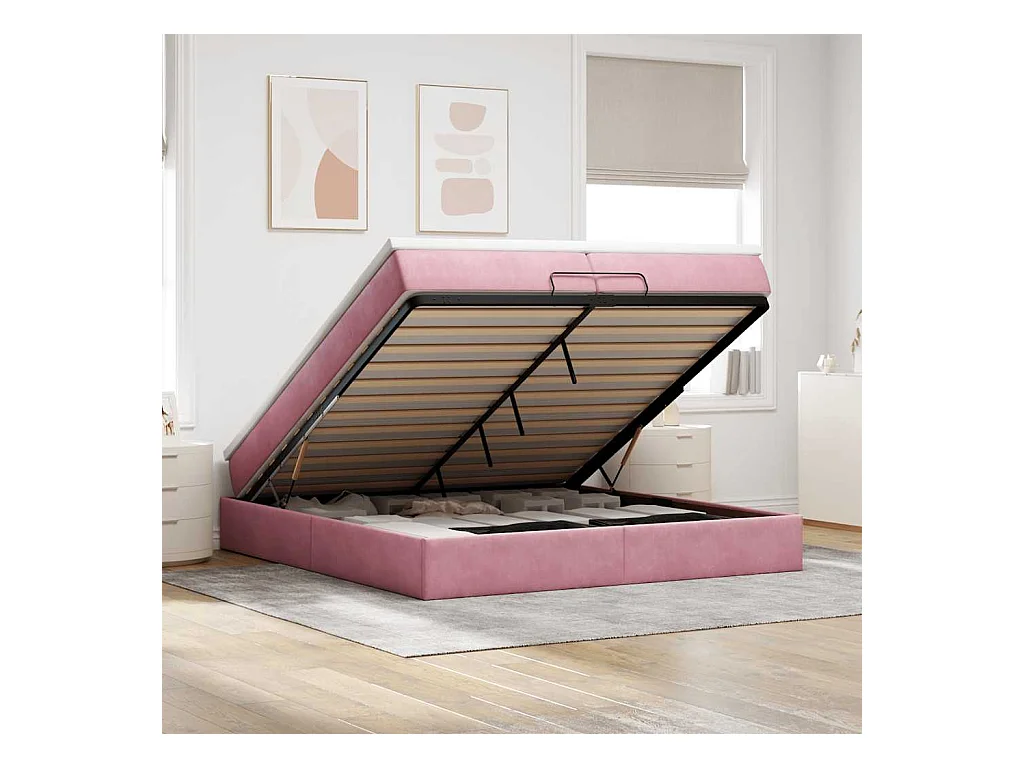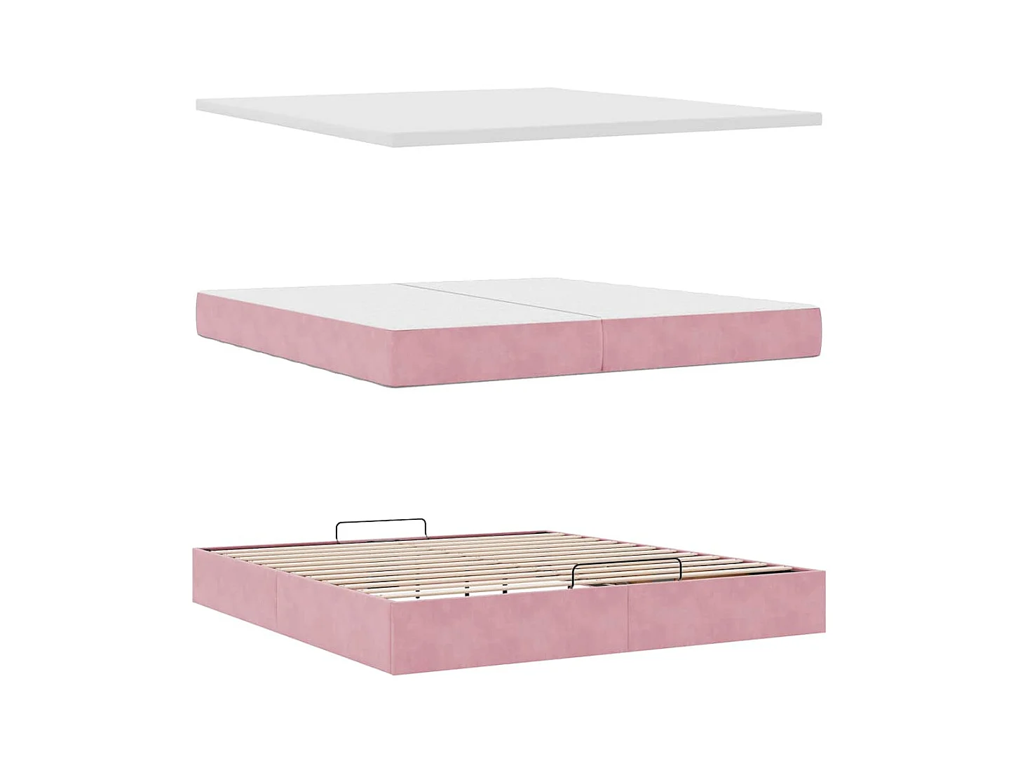 Struttura Letto Pouf con Materasso Rosa 200x200 cm Velluto