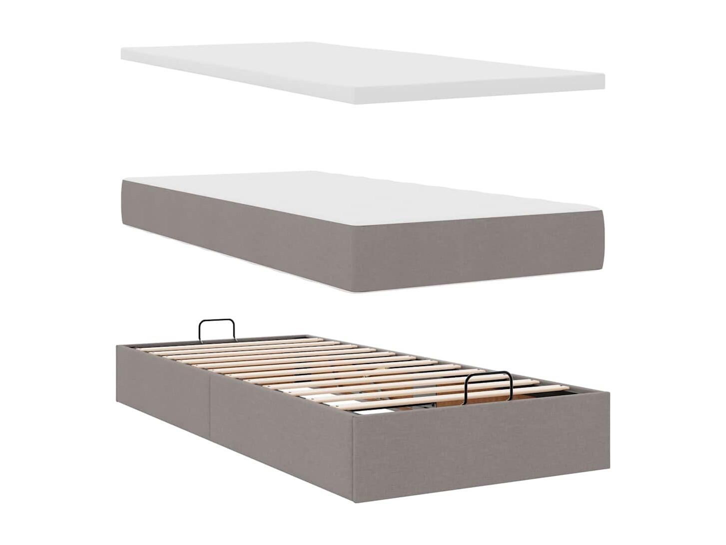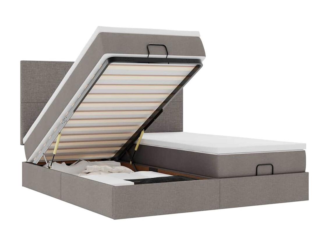 Struttura Letto Pouf con Materassi Tortora 200x200 cm Tessuto