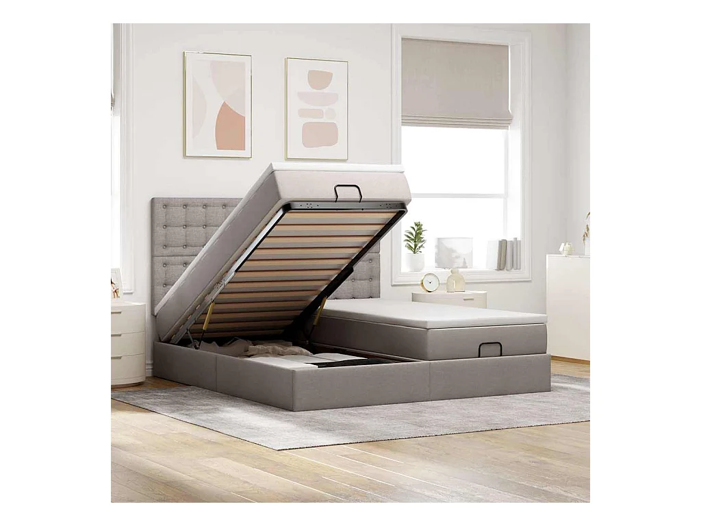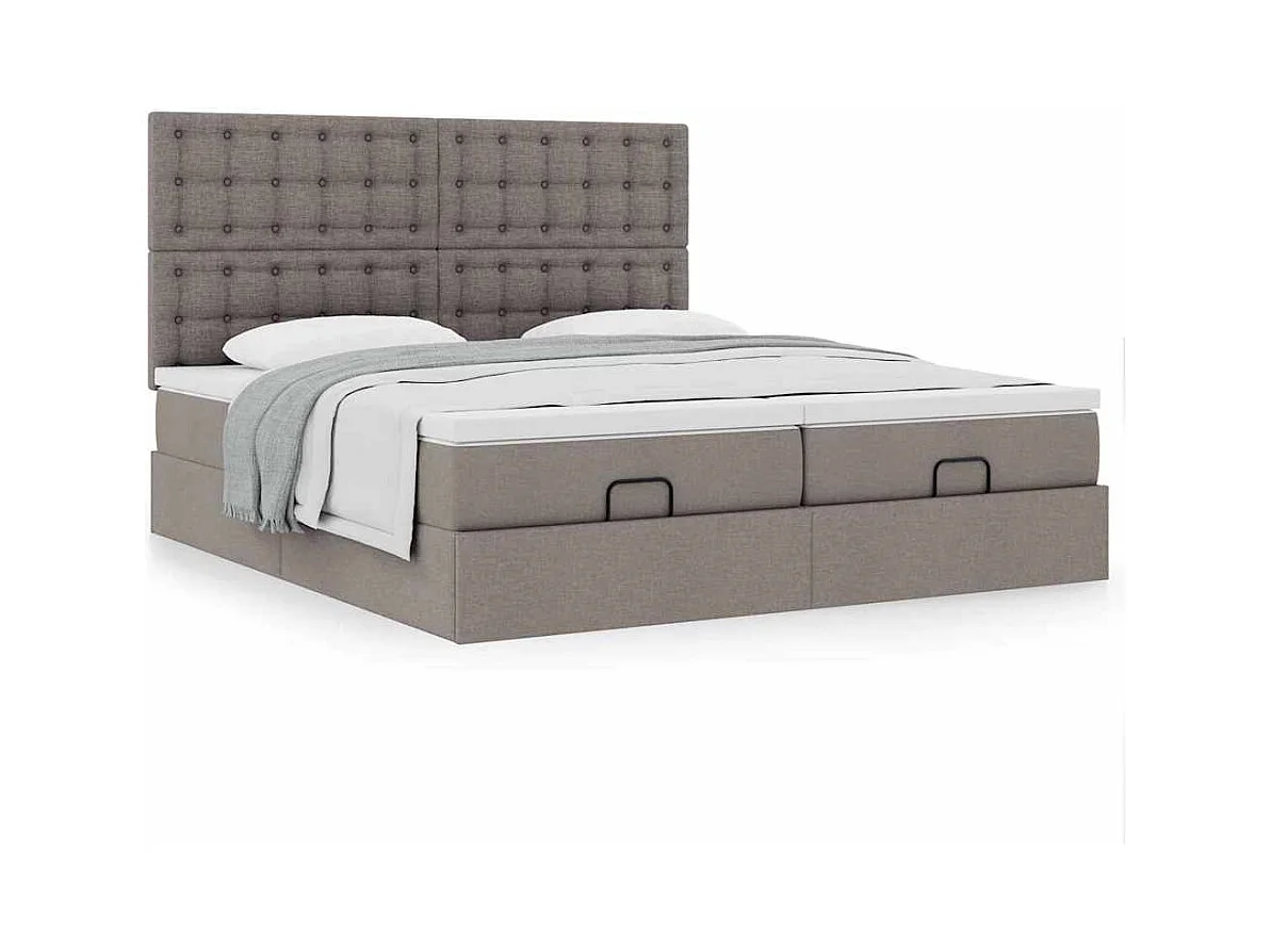 Struttura Letto Pouf con Materassi Tortora 200x200 cm Tessuto