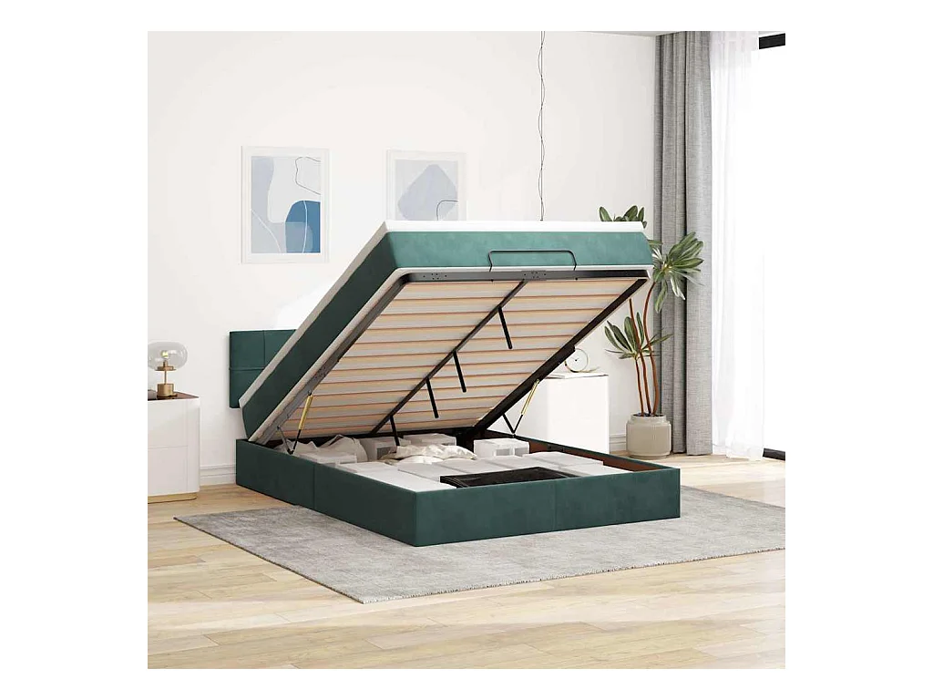 Giroletto a Molle con Materasso Verde Scuro 140x200 cm Velluto