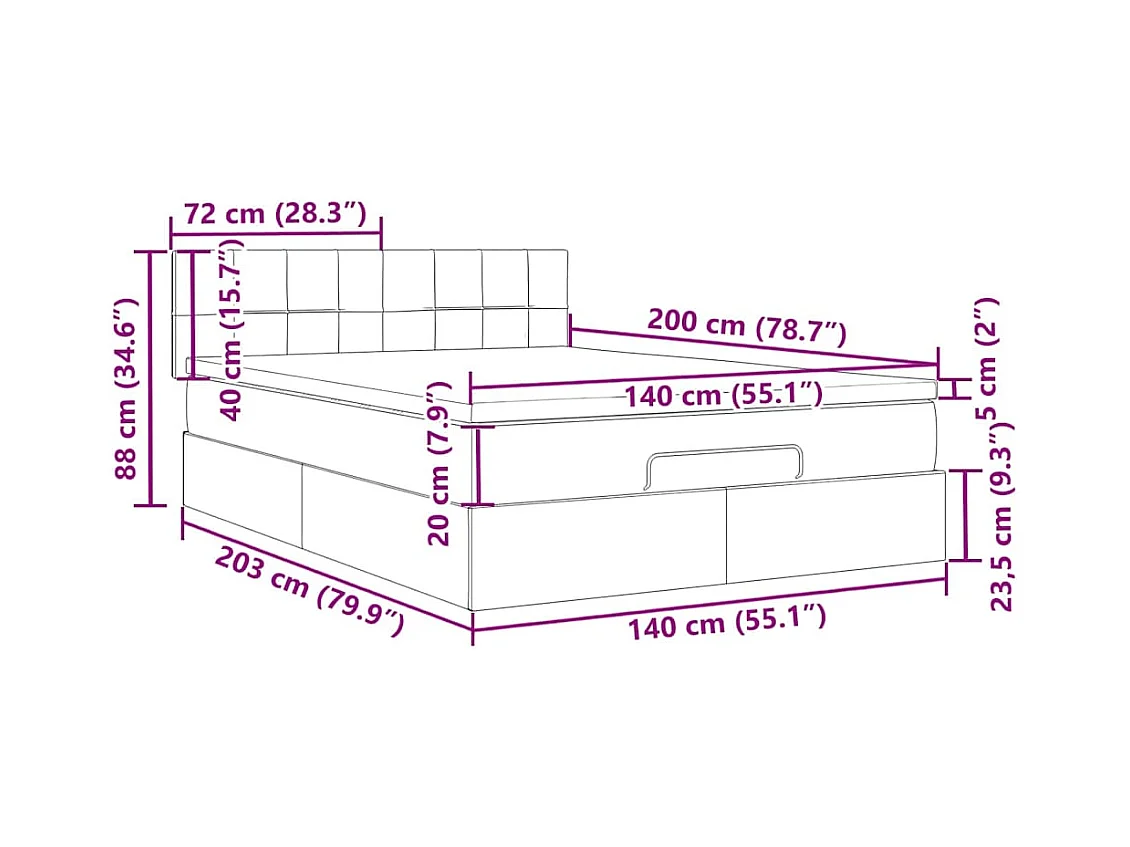 Struttura Letto Pouf con Materasso 140x200 cm in Velluto