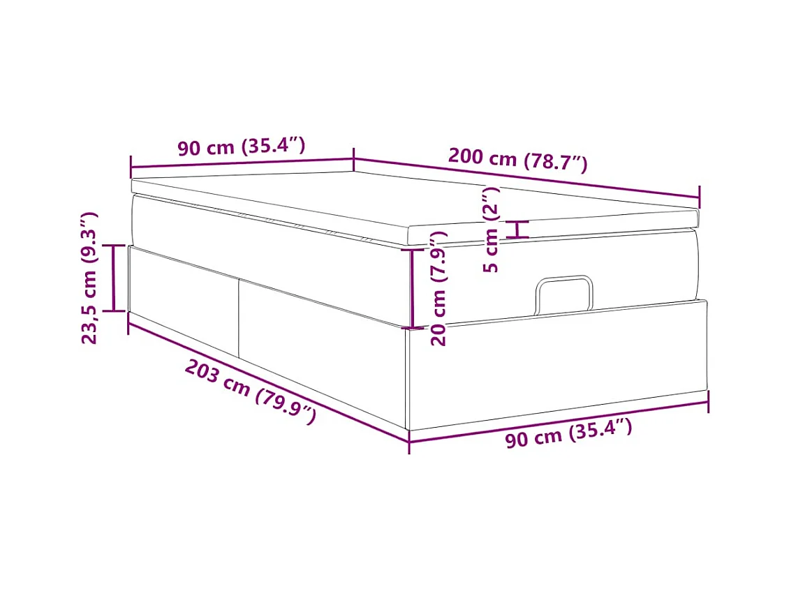 Struttura Letto Pouf con Materasso 90x200 cm in Velluto