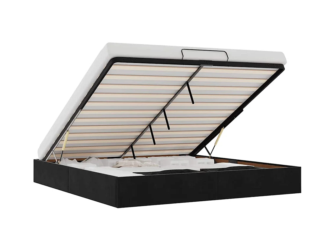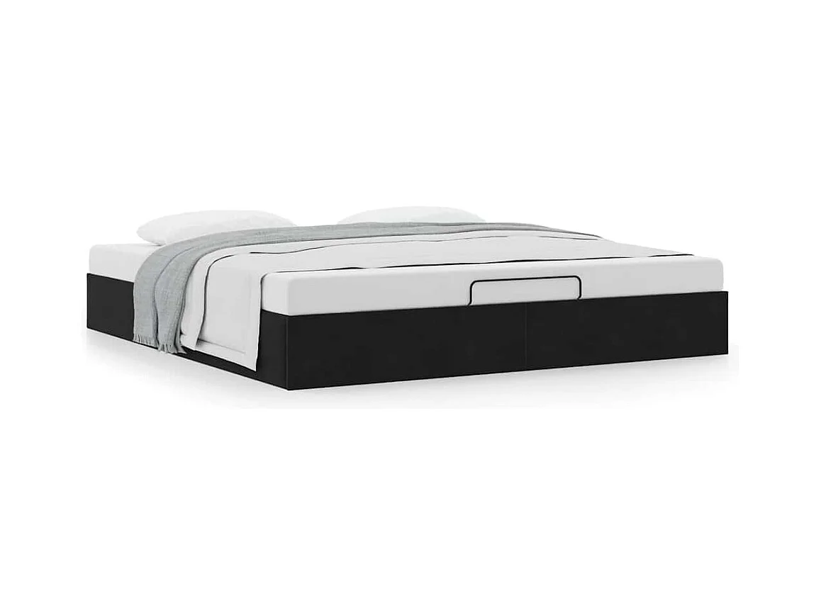 Struttura letto pouf senza materasso nero 160x200 cm velluto