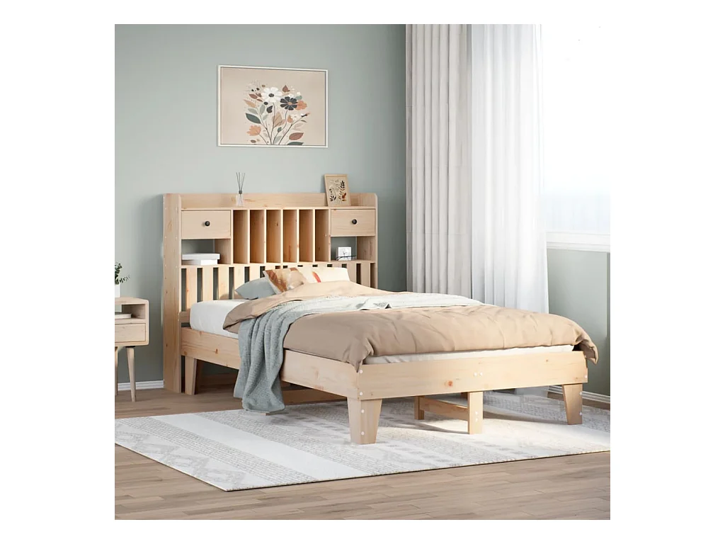 Letto libreria senza materasso 135x190 cm in legno massello di pino