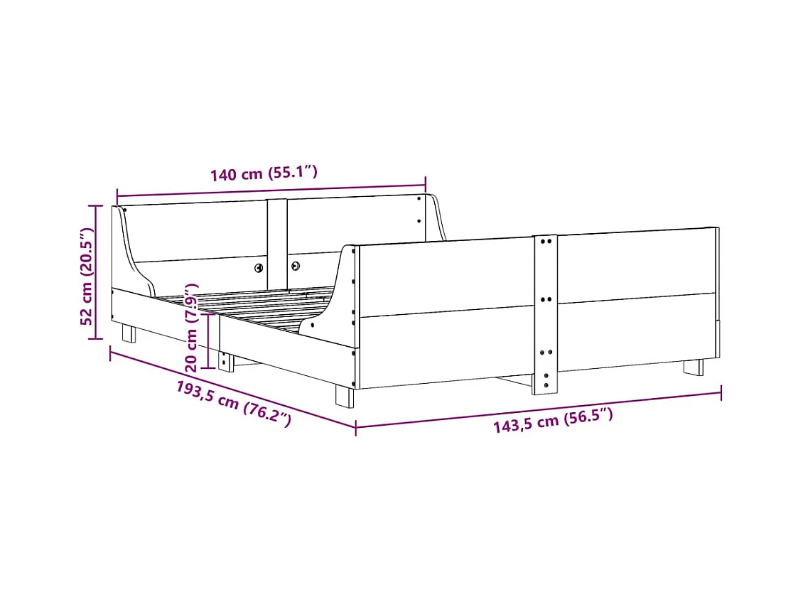 Struttura letto senza materasso 140x190 cm in legno massello di pino