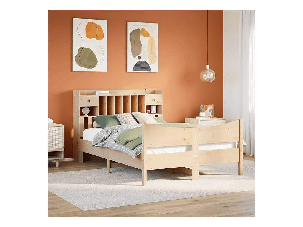 Letto a libreria senza materasso 140x200 cm in legno massello di pino