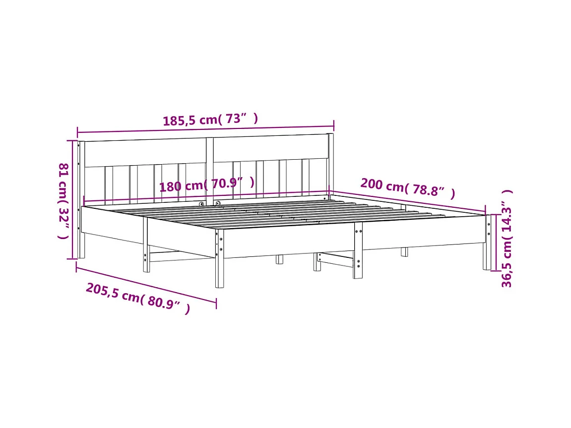 Struttura letto senza materasso, cera marrone, 180x200cm, legno massello di pino