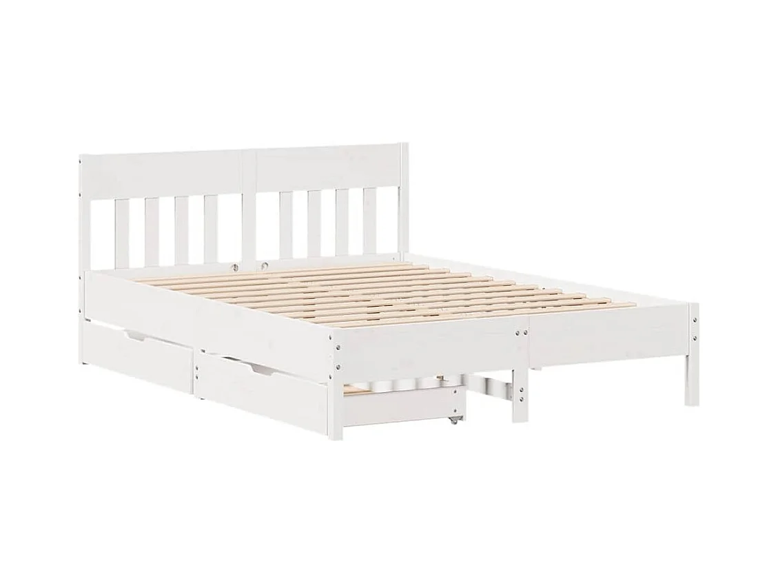 Struttura letto con cassetti bianco 135x190 cm in legno massello di pino