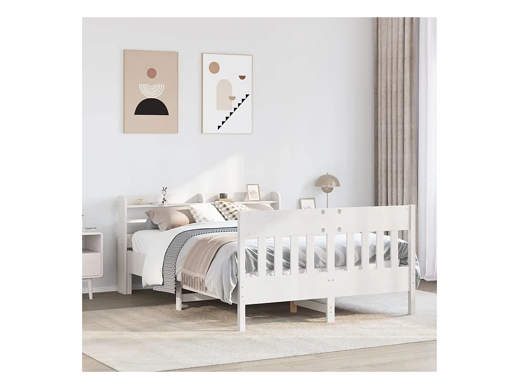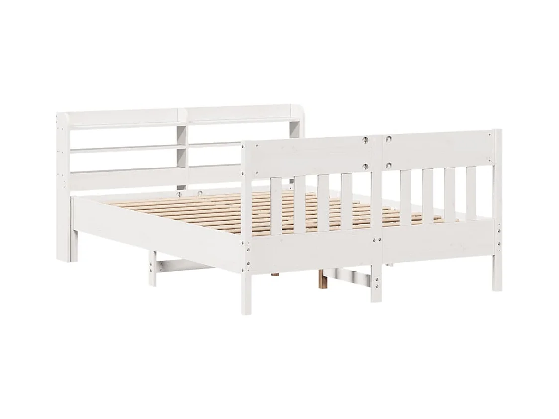 Struttura letto con testiera bianca 150x200 cm in legno massello di pino