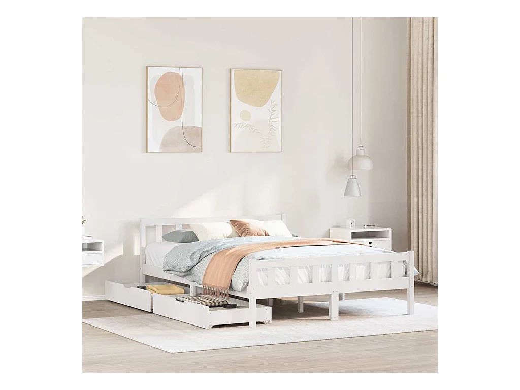 Struttura letto senza materasso bianco 160x200 cm in legno massello di pino