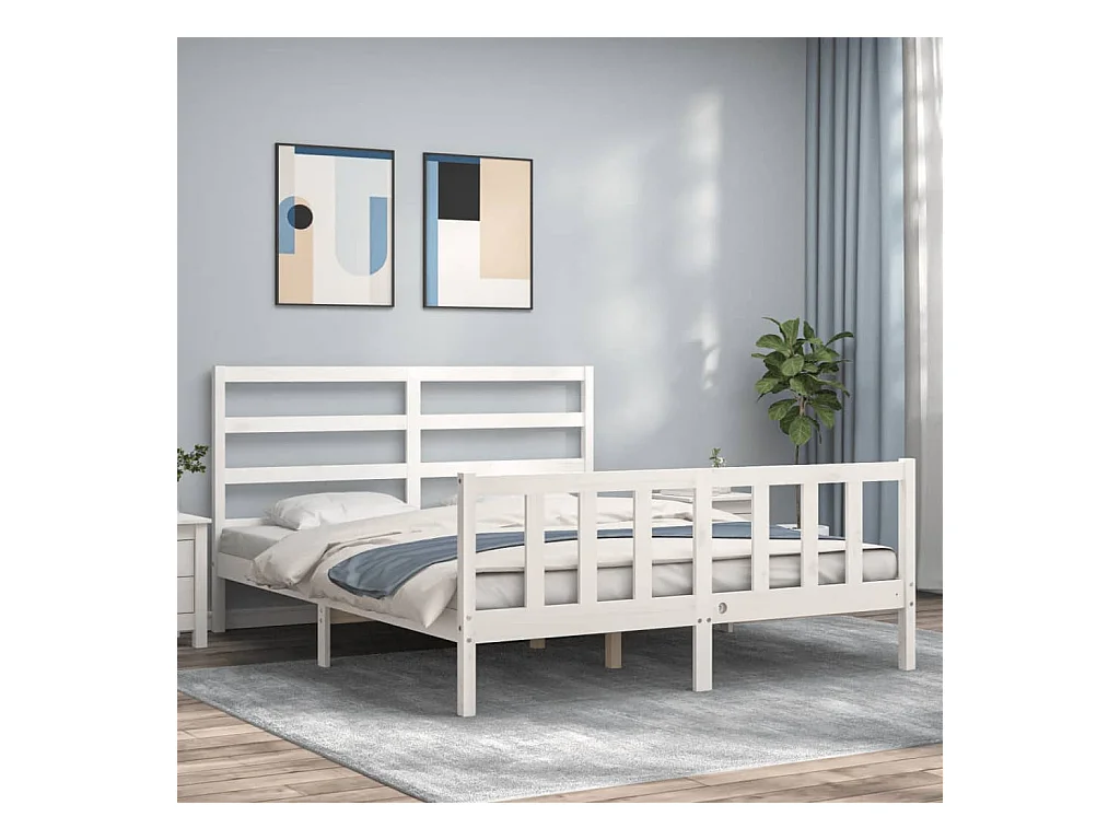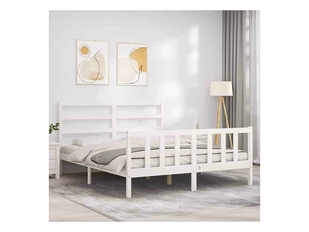 Struttura letto senza materasso bianco 160x200 cm in legno massello di pino