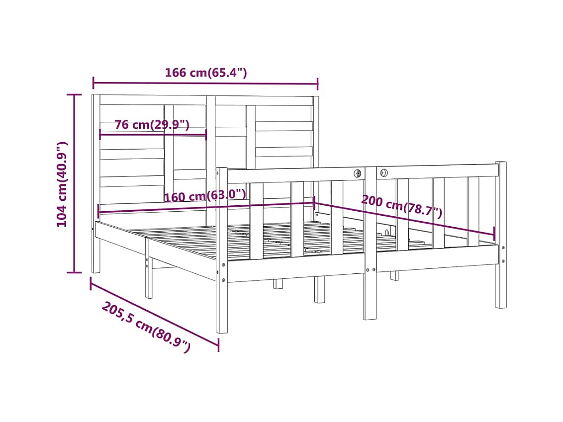 Struttura letto senza materasso bianco 160x200 cm in legno massello di pino