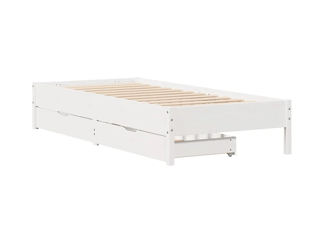 Letto con cassetti e materasso bianco 90x190 cm in legno massello di pino