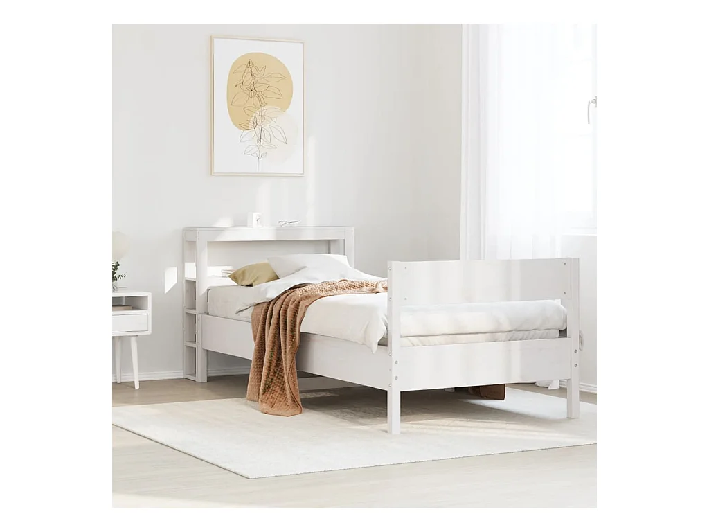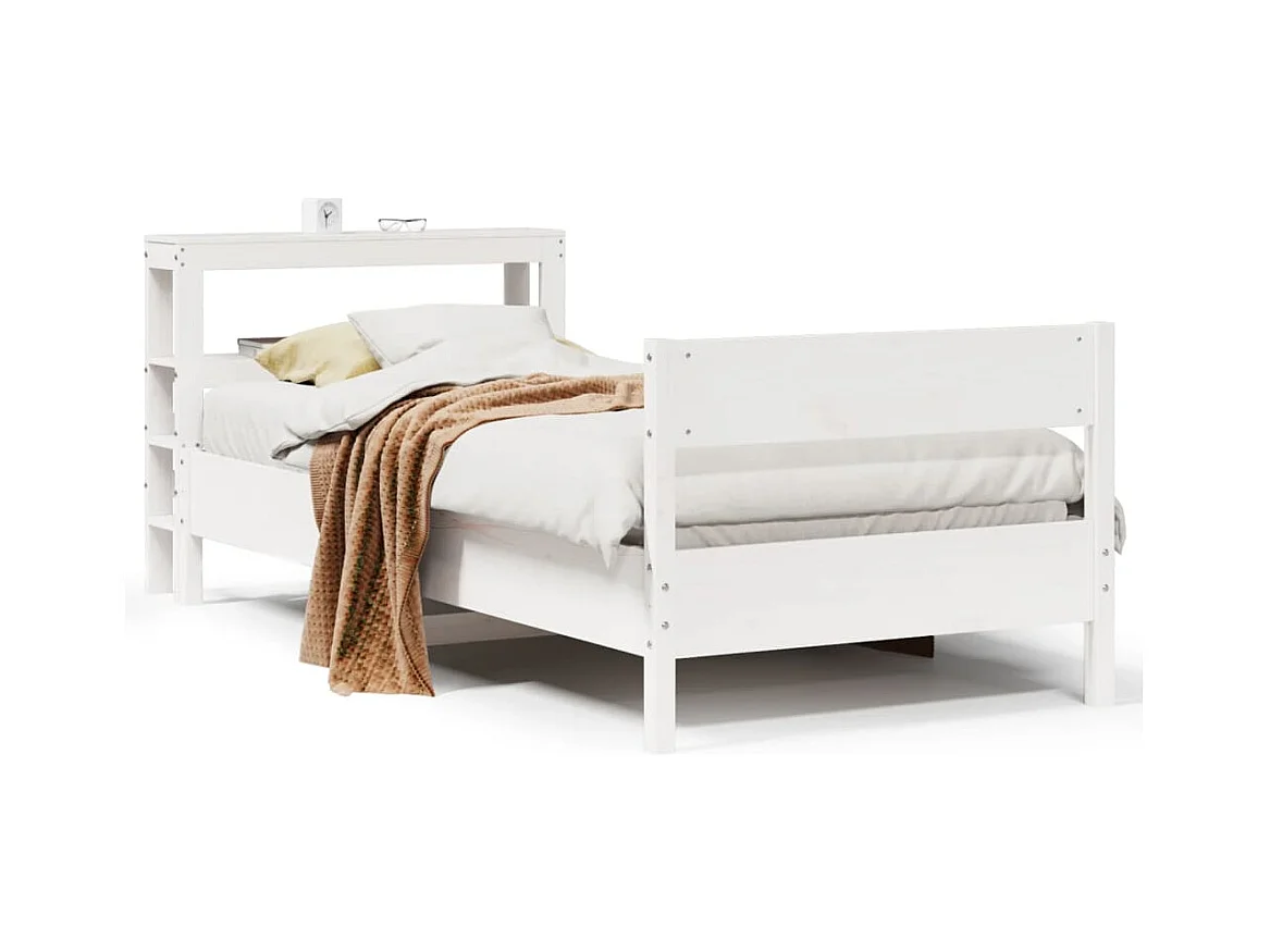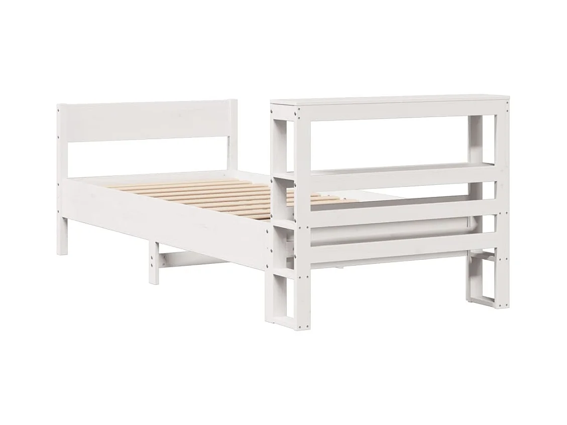 Letto libreria bianco senza materasso 90x200cm in legno massello di pino